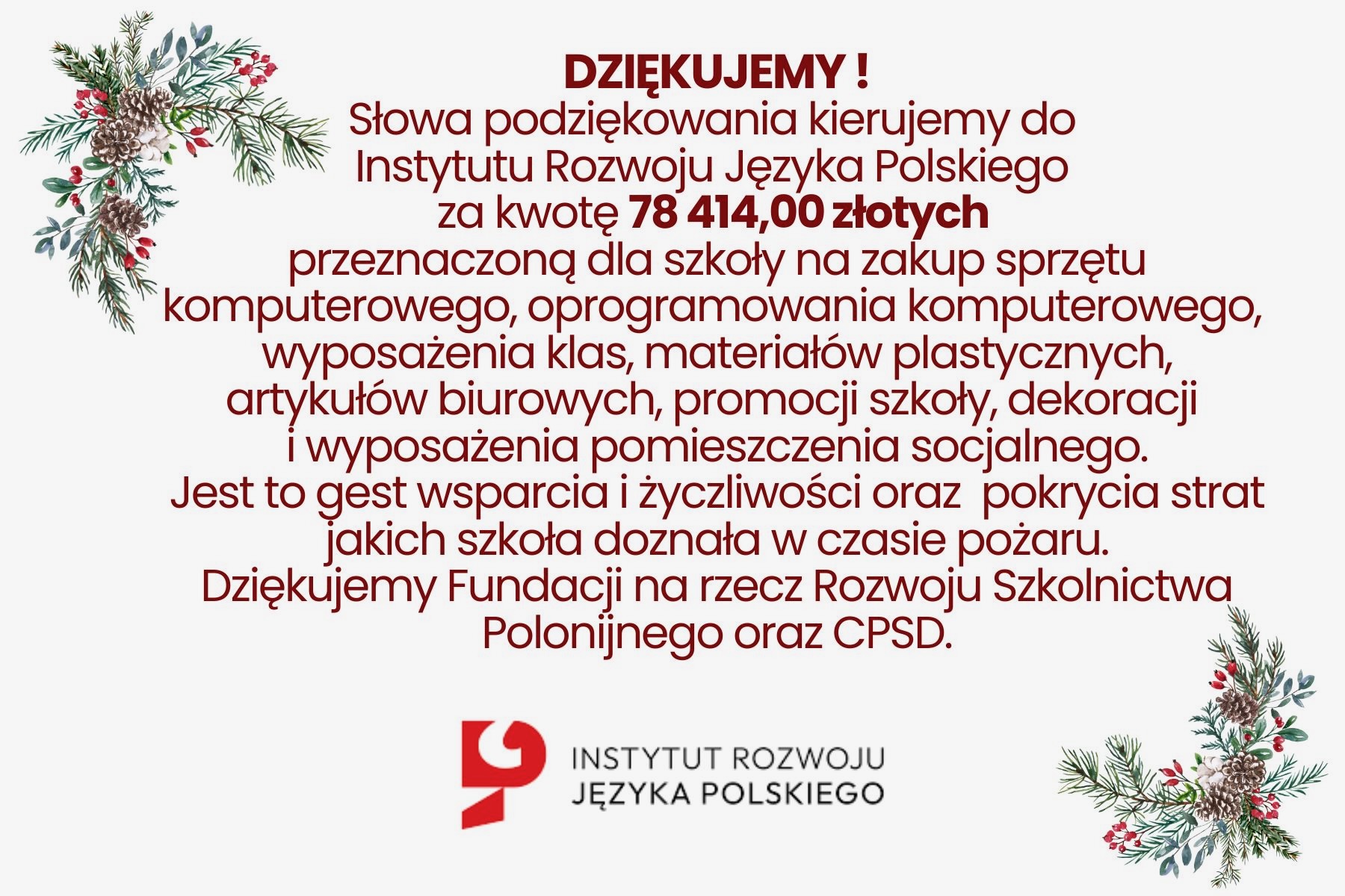 Z naszej szkoły 14 nauczycieli otrzymało łączną kwotę 13 300 złotych (950 złotych każdy nauczyciel). Dziękujemy!